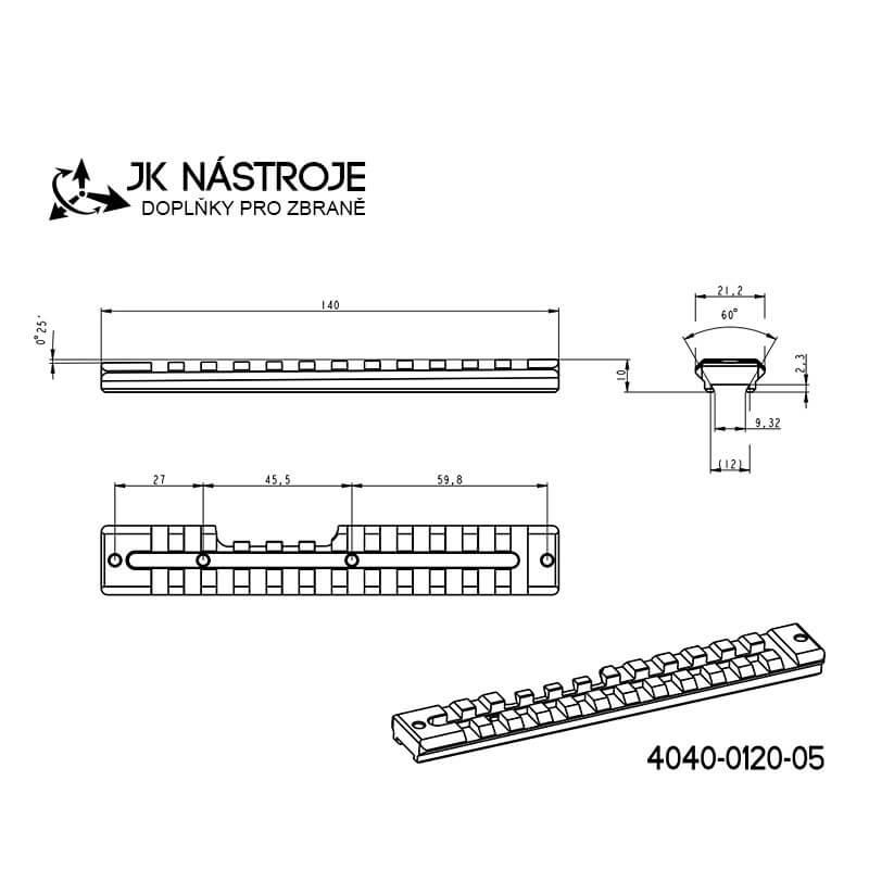Picatinny bėgelis (bazė), skirtas montuoti optikos žiedus su Picatinny standartu.