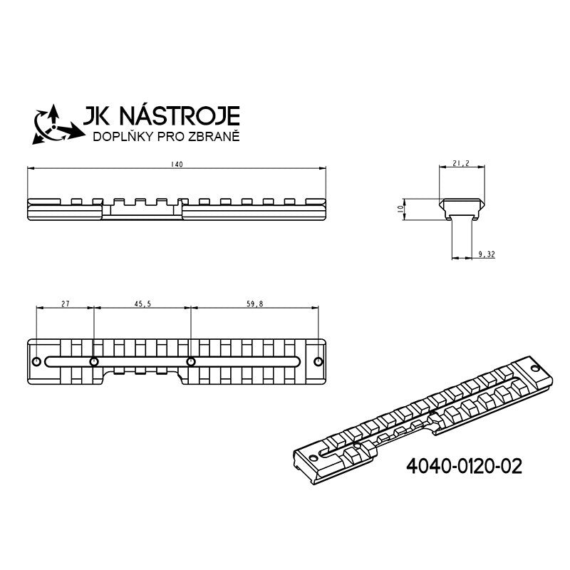 Picatinny bėgelis (bazė), skirtas montuoti optikos žiedus su Picatinny standartu.