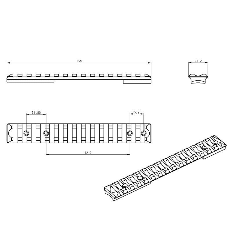 Picatinny bėgelis (bazė), skirtas montuoti optikos žiedus su Picatinny standartu.