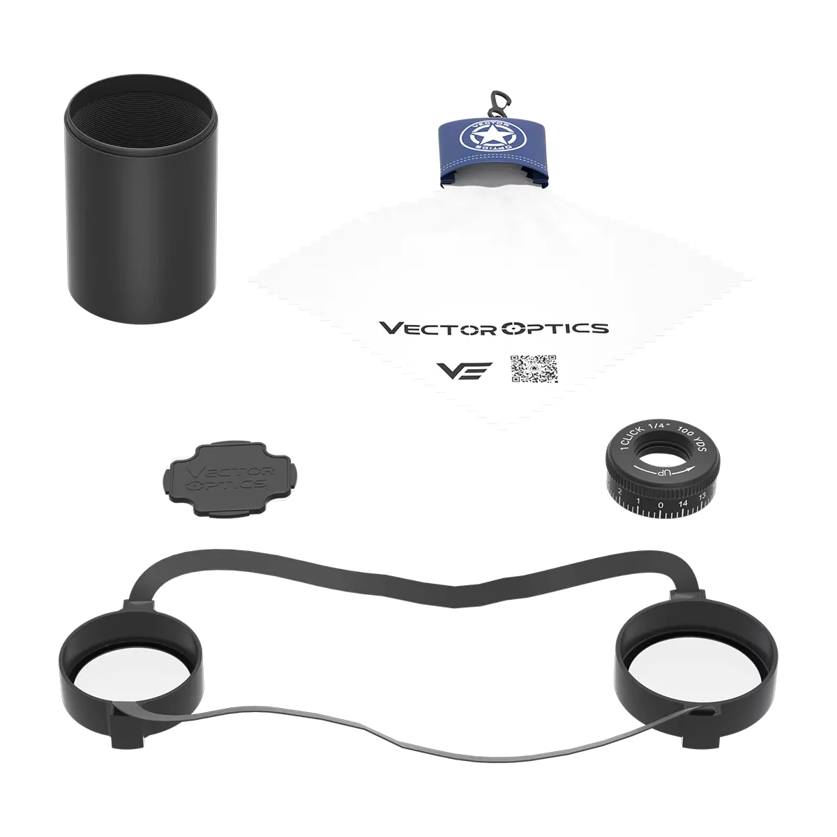 - Priedai: viena pora 30 mm Picatinny optikos žiedai, objektyvo dangteliai, valymo servetėlė ir kt.